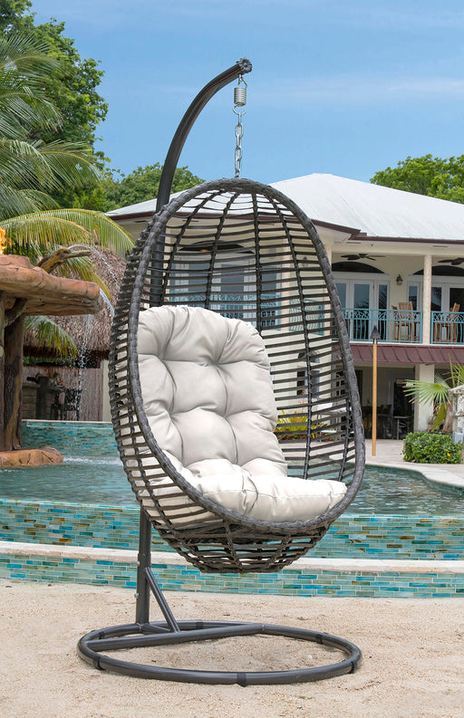 View full detailsElevate your outdoor space with the Panama Jack Graphite 2-Piece Hanging Chair with Cushion. Hand-woven with see-through grey fiber over aluminum f...
