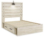 What a delightful take on rustic industrial style. Whether modern loft or modern farmhouse, this full panel storage bed makes itself at home. The wispy whitewash palette enhances without covering the grain for that weathered look you crave. Love to read in bed? You're sure to find the retro-chic light sconce and USB plug-ins on the open-slat style headboard such a bright idea. Elongated drawer pulls on the under bed storage drawers elevate the aesthetic.