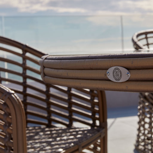 The Ruby 7-Piece Dining Set brings resort-style elegance to your outdoor space. Featuring six curved dining chairs and a round glass-top table, thi...