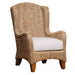 Introduce an air of sophistication and warmth to your home with the Panama Jack Amelia Wing Chair. Expertly crafted with a natural seagrass frame and sturdy wooden legs, this chair combines timeless charm with durability. Its high-back design and spacious seat offer unparalleled comfort, further enhanced by the included indoor beige factory cushion. For added customization, choose from a range of indoor and Sunbrella fabric options to suit your decor. Fully assembled for your convenience, this contract-quality wing chair is perfect for cozy living rooms, sunrooms, or elegant hospitality spaces.