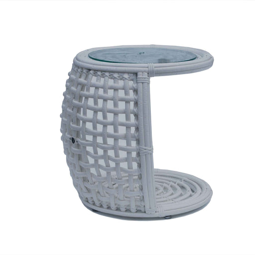 Add luxury, convenience and durability to alfresco fun. This outdoor end table captures the textural beauty of wicker while withstanding the elemen...
