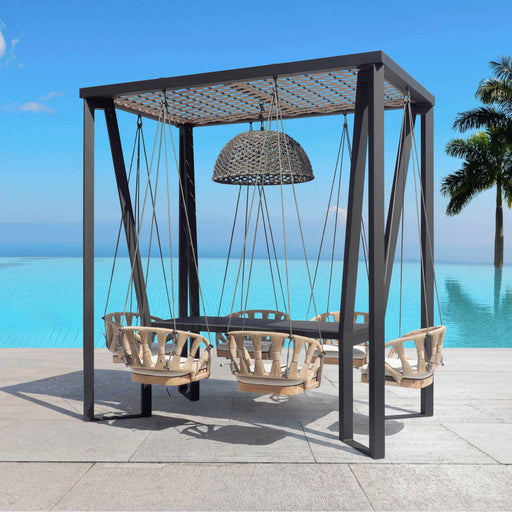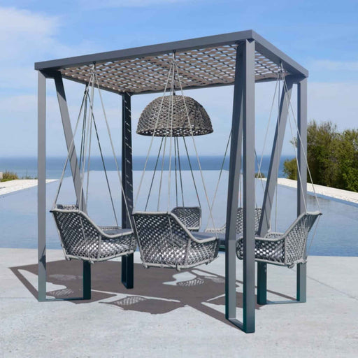 View full detailsHorizon 8FT Pergola with Lamp, Moma Hanging Chairs & Aluminum Table