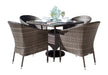 Set Includes: 1 Dining Base and 4 Woven chairs with cushions