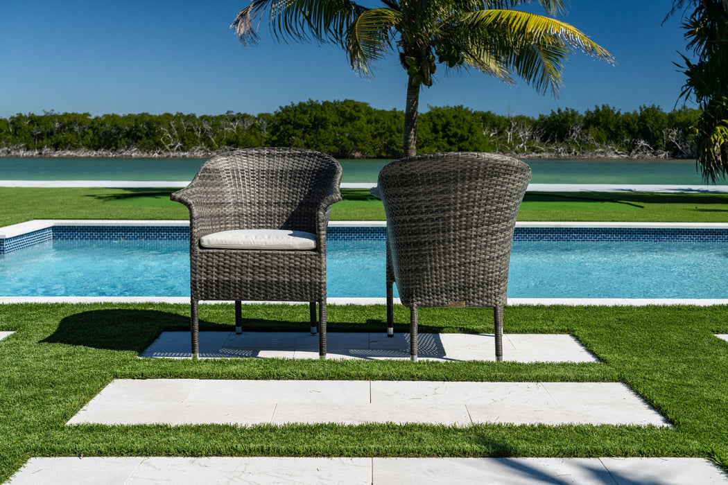 Enhance your outdoor space with the Spectrum Stackable Woven Armchair with Cushion. This chair features a distinctive synthetic HDPE wicker body and a sturdy welded aluminum frame, providing both durability and style. Perfect for trendy cafes, bistros, or patios, the aluminum feet add an additional touch of style to this chic chair. The outdoor cushion included is made of 100% polyester fabric, adding an extra layer of comfort to your seating experience. Plus, with optional Sunbrella fabrics available in a selection of colors, you can easily customize your chair to match your decor. Its stackable design makes it easy to store when not in use. Upgrade your outdoor space with the Spectrum Stackable Woven Armchair with Cushion and enjoy the ultimate in style and comfort.