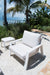 Bask in the thoughts of relaxing in the Mediterranean with the Panama Jack Mykonos seating collection. Enjoy this deep seating lounge chair made entirely of bright, white aluminum frames that will shine under clear blue skies reminiscent of the beautiful Greek isle. The Mykonos collection offers clean and sophisticated design with sleek lines and angles on its frames, while plush cushions provide serenity and tranquility for lounging. Upgrade to one of our many Sunbrella outdoor fabric options to give this collection your personal touch.